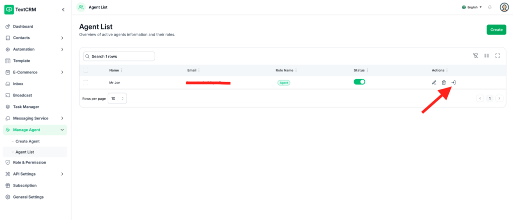 - Navigate to the Manage Agent menu in the main navigation bar.